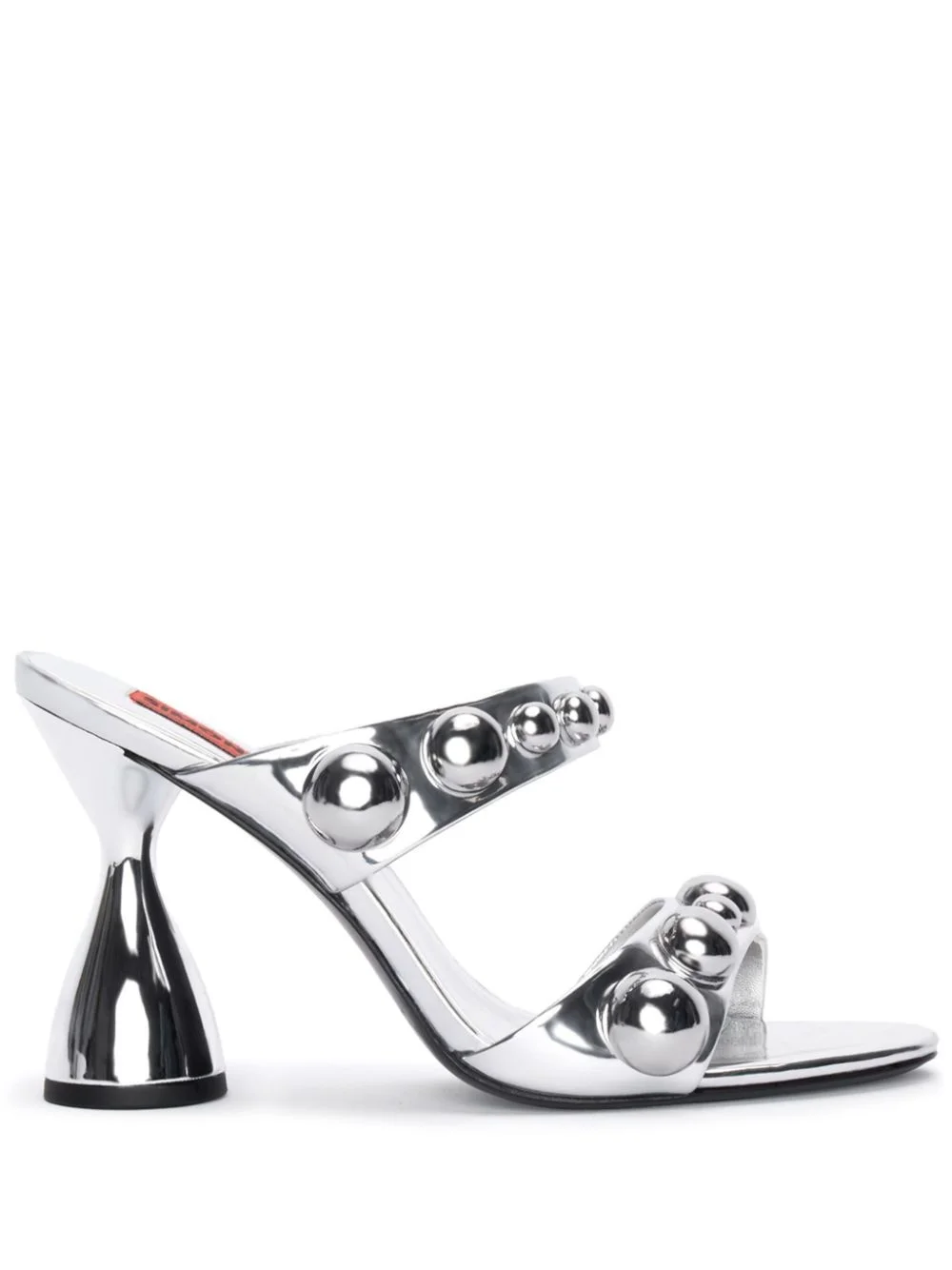 Dome Stud Verner sandals Highlights - Silver - Leather - Stud embellishment - Open toe - Open back - Logo patch to the front - High sculpted heel Imported Composition Sole: Leather 100% Outer: Polyurethane 60%, Polyester 40% Lining: Polyurethane 60%, Polyester 40% SIZE & FIT Measurement HEEL 4.13 in(10.5 cm)