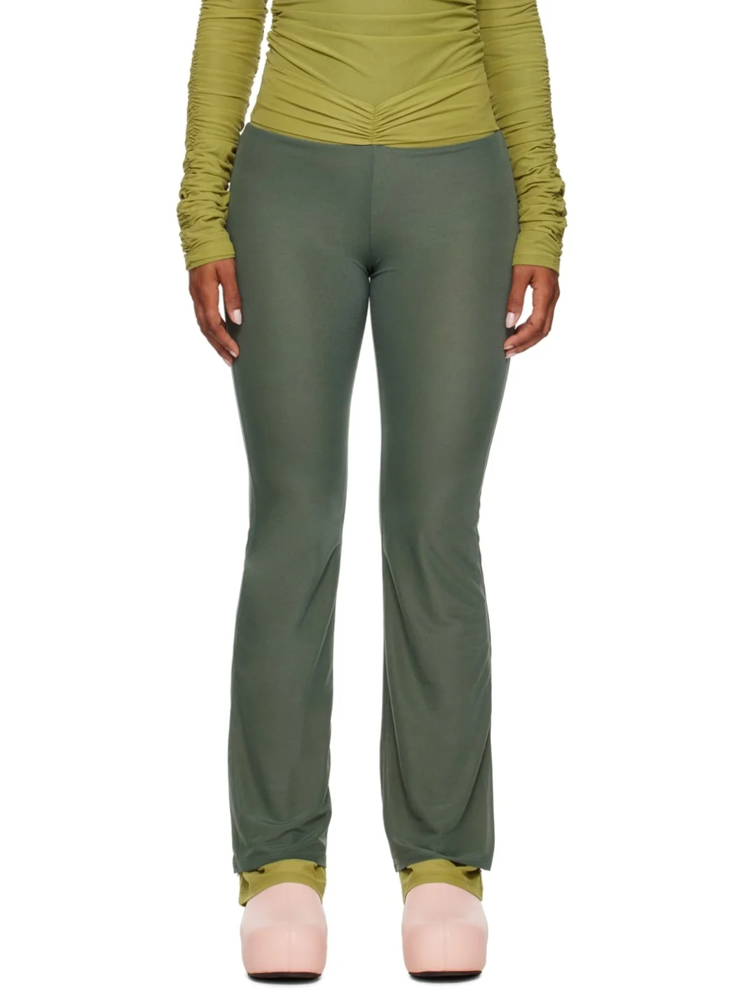 Slim-fit polyester mesh lounge pants. · Low-rise · Ruching at waistband · Full mesh lining Supplier color: Alien green 100% polyester. Made in China 222708F086011