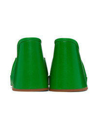 Grained goatskin heeled sandals in green. · Open round toe · Strap at vamp · Textile logo patch at padded footbed · Covered platform midsole and block heel · Rubber injection at heel · Leather outsole in tan · Platform: H1 in · Heel: H4.5 in Supplier color: Grass green Upper: goatskin. Sole: leather, rubber. Made in Portugal 231708F125000
