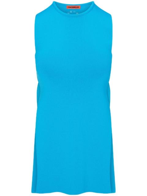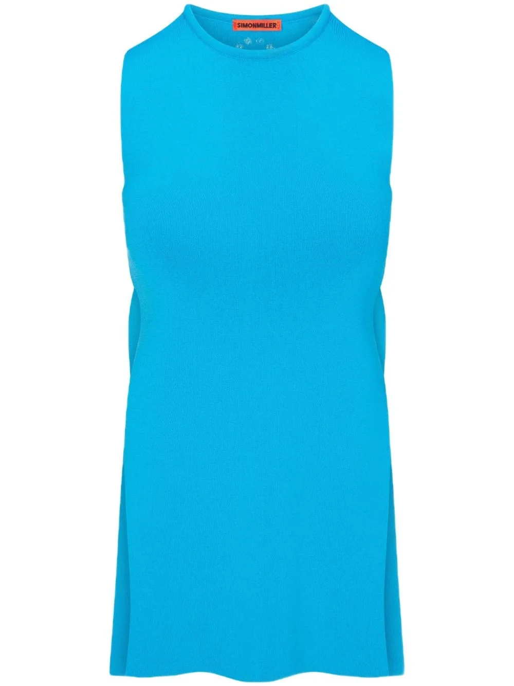 Knits By Canoga top Highlights - Ocean blue - Side slits - Embroidered logo to the rear - Round neck - Sleeveless Imported Composition Viscose 65%, Nylon 35%