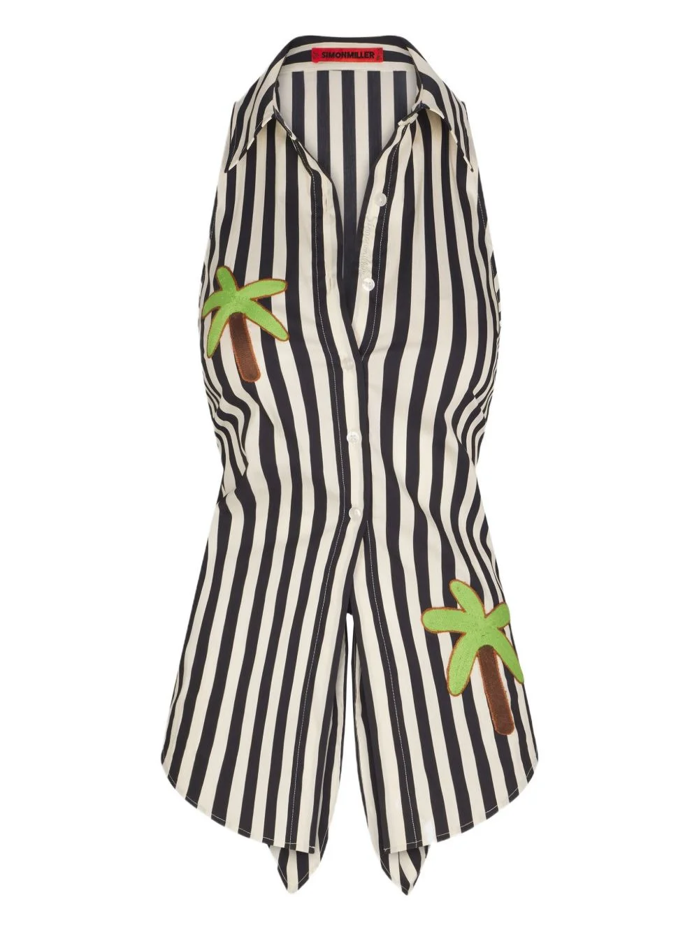 Loch palm-tree top Highlights - Black - Button fastening - Collared neckline - Palm-tree embroidery Imported Composition Cotton 75%, Nylon 22%, Spandex/Elastane 3% SIZE & FIT Measurement BUST 12.59 in(32 cm) WAIST 9.44 in(24 cm) Washing instructions Dry Clean Only