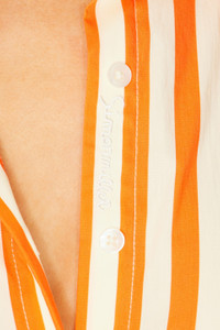 Details - 75% cotton, 22% nylon, 3% spandex - Dry clean only - Front button closure - Back tie accent - Back cut-out - Button cuffs - Lightweight poplin fabric - Made in Vietnam - Our Style No. SIMF-WS75 - Manufacturer Style No. W3279-3170