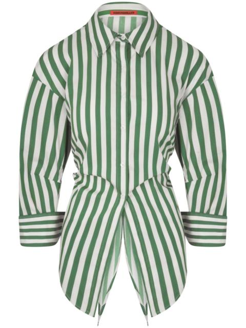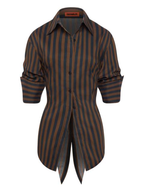 Loch button-up shirt Highlights - Navy blue and cream - Striped - Button fastening - Poplin texture - Long sleeves Imported Composition Cotton 75%, Nylon 22%, Spandex/Elastane 3% SIZE & FIT Model measurements Height 5 ft 10 in(1.78 m) Bust/Chest 33.46 in(85 cm) Hips 36.22 in(92 cm) Waist 23.22 in(59 cm) Washing instructions Read Manufacturer Guidelines
