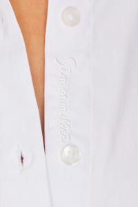 Details - 75% cotton, 22% nylon, 3% spandex - Dry clean only - Unlined - Front button closure - Back tie-up closure - Back cut-out detail - Front tonal logo detail - Poplin fabric - Made in Vietnam - Our Style No. SIMF-WD125 - Manufacturer Style No. W4563-3169