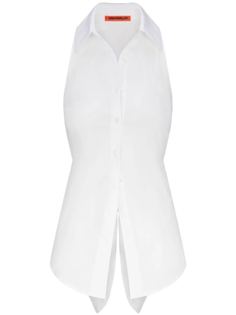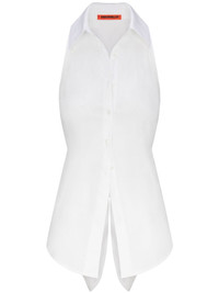 tie-fastening shirt Highlights - White - Front button fastening - Rear tie fastening - Spread collar - Sleeveless Imported Composition Cotton 75%, Nylon 22%, Spandex/Elastane 3%