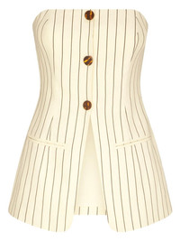 Mori button top Highlights - Beige - Pinstripe pattern - Strapless design - Button front fastening - Straight hemline Imported Composition Linen/Flax 55%, Cotton 45% SIZE & FIT Measurement WAIST 12.99 in(33 cm) Washing instructions Dry Clean Only