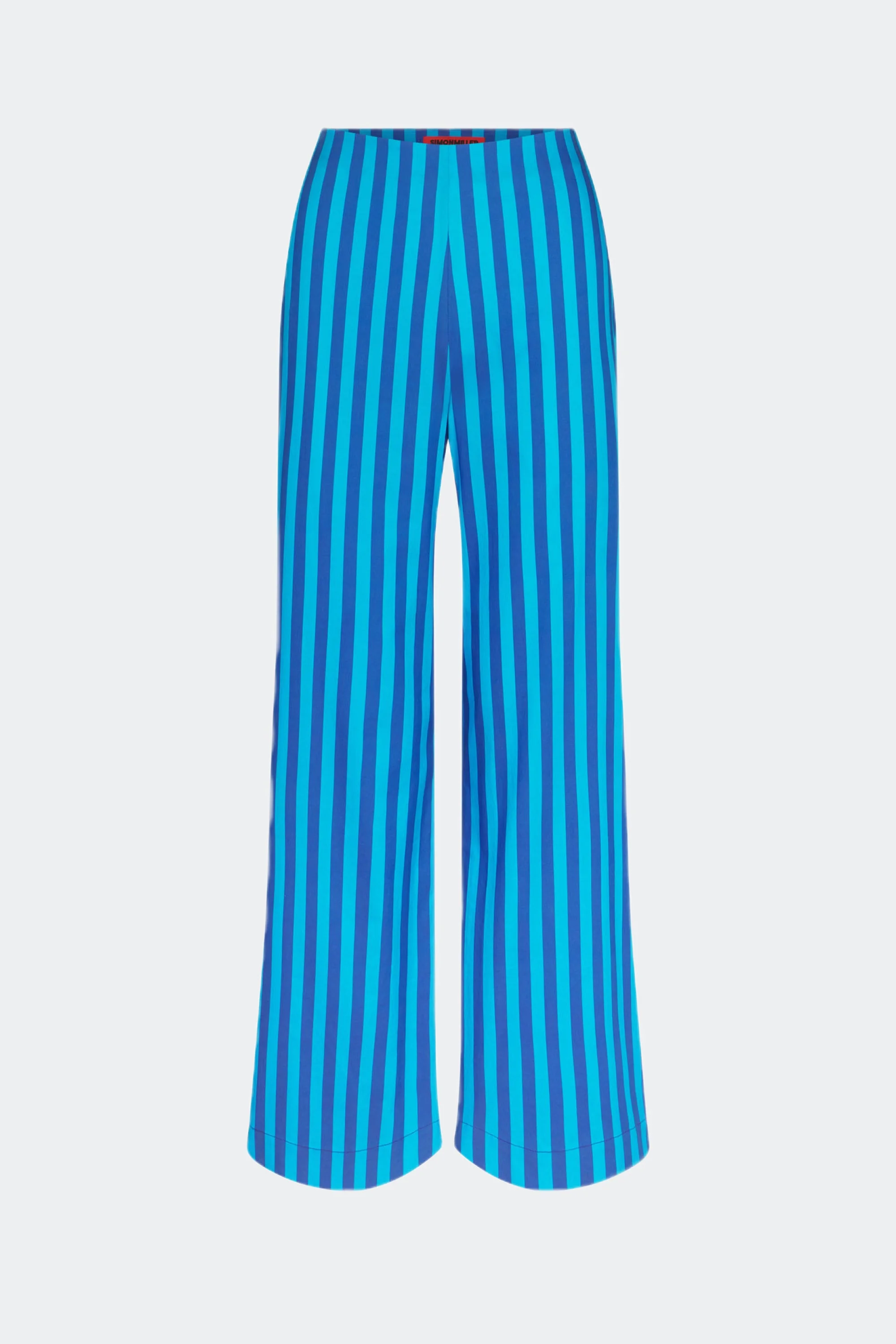 Our best selling pants in a new stripe. Pia's best selling attributes of wide leg, mid-rise, clean front, and side zipper with Poplin Cotton material. Effortless outfit with the matching Loch Top Color: tonal blue stripe DETAILS Model: W5209-3170-96477 75% COTTON, 22% NYLON, 3% SPANDEX DRY CLEAN FOR BEST RESULTS Inseam: 31 inches IMPORTED SIZING Maya is 5'9" and wears a size 4 Bust: 32" Waist: 24" Hips: 36"