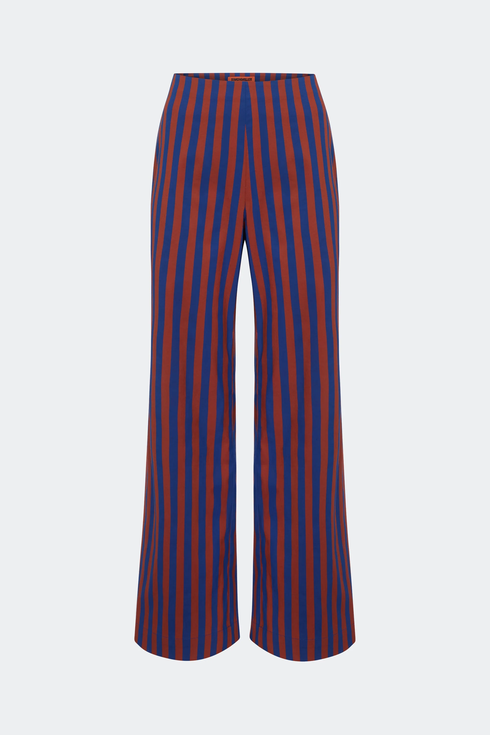 Our bestselling pant, now in a new navy and grass green stripe. Features a wide leg, mid-rise, clean front, and side zipper in stretch cotton poplin. Pair with the loch poplin button up for a matching set. Color: navy/henna stripe DETAILS Model: W5209-3170-96565 75% COTTON, 22% NYLON, 3% SPANDEX Imported MACHINE WASH COLD, DO NOT BLEACH, TUMBLE DRY NORMAL, IRON LOW HEAT. Inseam: 31 inches SIZING Lauren is 5’10 and wears a size S Bust: 32" Waist: 24" Hips: 36"