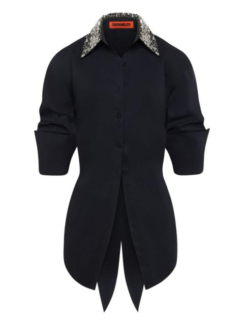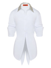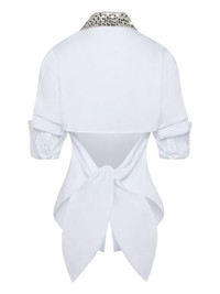 embellished tie loch shirt Highlights - White - Embellished collar - Button fastening - Tie detail - Long sleeves - Open back Imported Composition Cotton 75%, Nylon 22%, Spandex/Elastane 3% Washing instructions Dry Clean Only