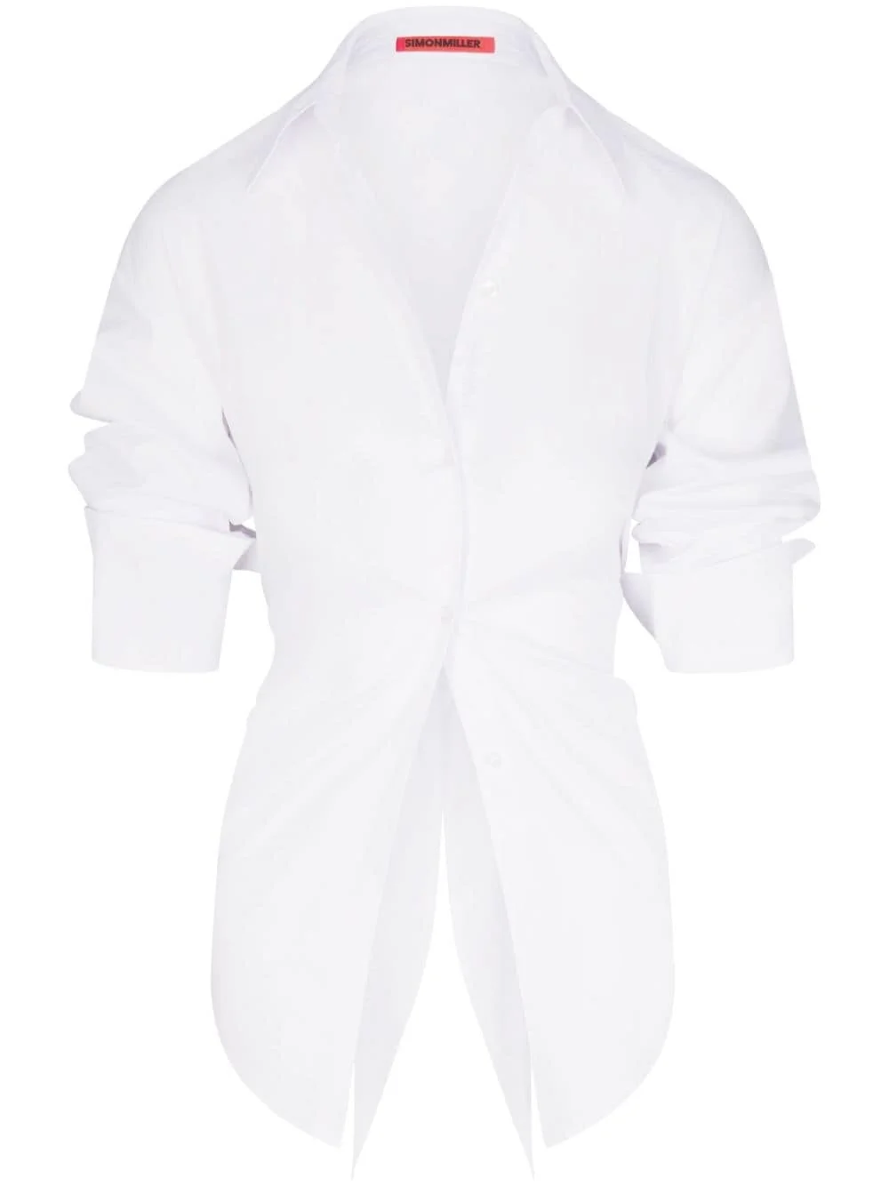 Loch blouse Highlights - White - Cotton blend - Poplin texture - Gathered detailing - Cut-out detailing - Spread collar - Front button fastening - Rear tie fastening - Short rolled sleeves - High-low hem Imported Composition Cotton 78%, Nylon 19%, Spandex/Elastane 3%