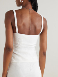 Alessandra Gathered Bead-embellished Embroidered Linen Camisole
