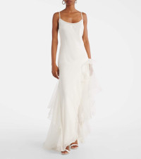 Bridal Sage Flounce ruffled silk cocktail dress