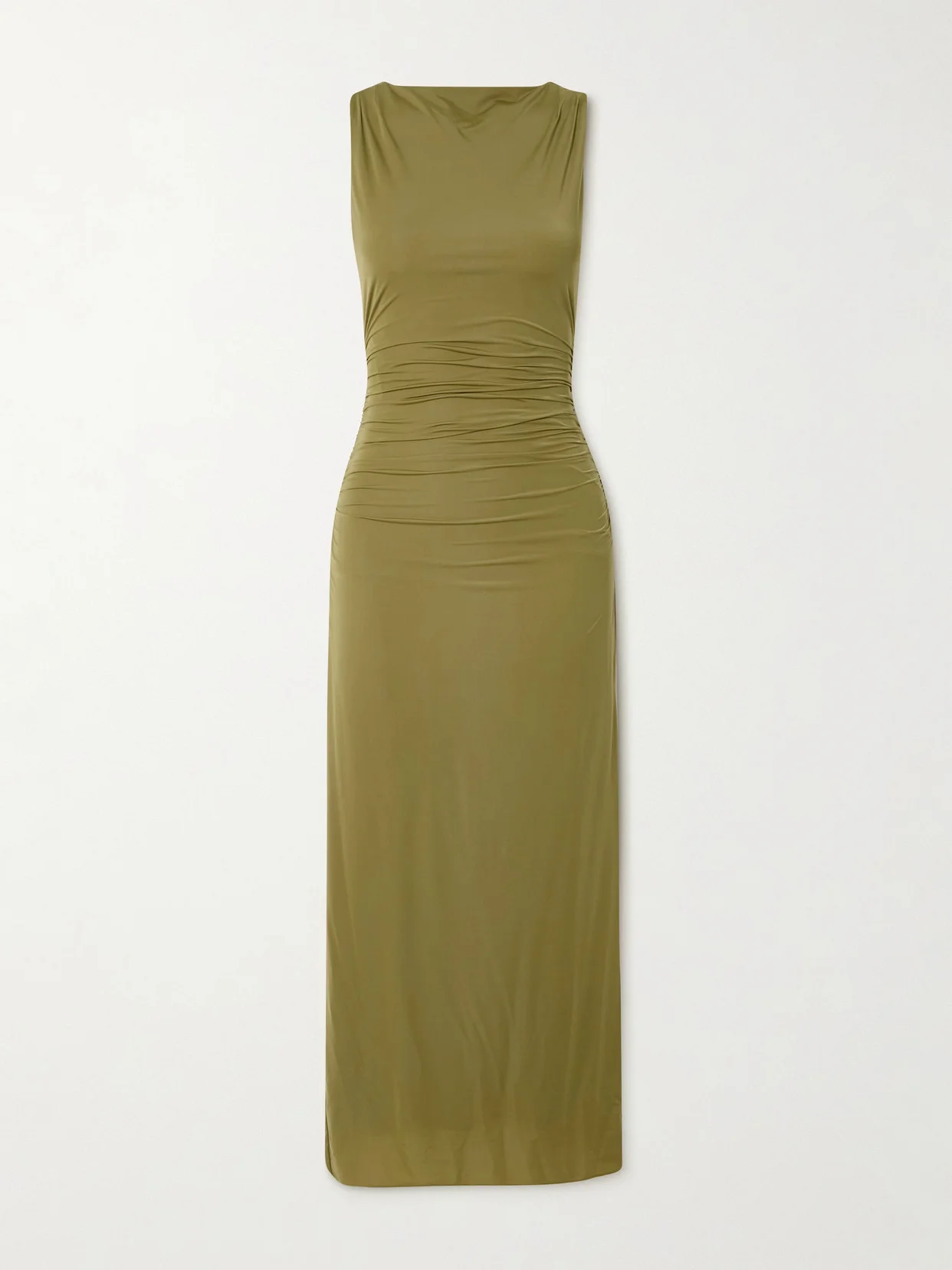 Cascina Open-back Gathered Stretch-jersey Midi Dress