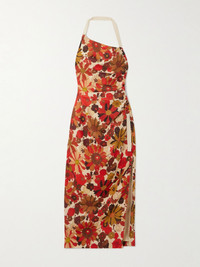 Based in Australia, SIR does warm weather dressing with elegance and ease. Perfect for tropical escapes, this 'Castella' dress is cut from breathable floral-print linen with a folded halter neckline. The tie along the side seam allows you to adjust the gathering. Size & Fit SIR. follows its own size guide, please refer to below: - Size 00 = UK 4/ US 0/ IT 36/ FR 32 - Size 0 = UK 6/ US 2/ IT 38/ FR 34 - Size 1 = UK 8/ US 4/ IT 40/ FR 36 - Size 2 = UK 10/ US 6/ IT 42/ FR 38 - Size 3 = UK 12/ US 8/ IT 44/ FR 40 - Size 4 = UK 14/ US 10/ IT 46/ FR 42 - Fits true to size, take your normal size - Designed for a close fit - High leg split - Mid-weight, non-stretchy fabric - Model is 177cm/ 5'10" and is wearing the designer's size 0 Model measurements: - Bust: 77cm/ 30.5" - Waist: 62cm/ 24.5" - Hip: 88cm/ 34.5" Details & Care - Multicolored linen, beige grosgrain - Concealed hook and zip fastening at side - 100% linen; lining: 100% cotton - Fully lined - Dry clean