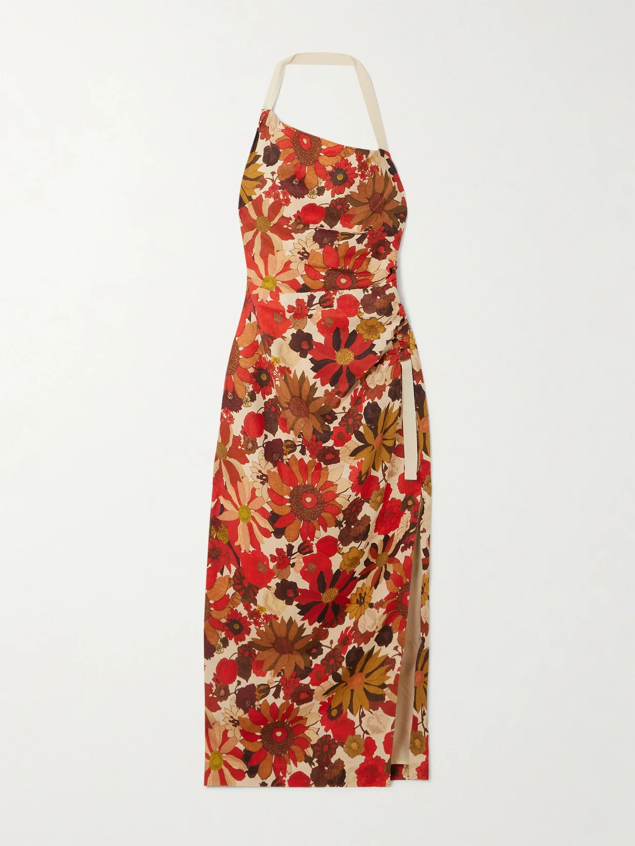 Castella Tie-detailed Gathered Floral-print Linen Halterneck Midi Dress