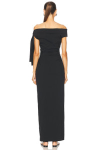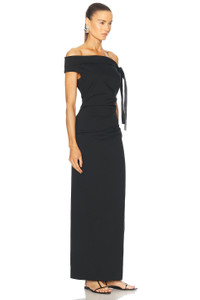 Details - Self: 75% cotton, 22% nylon, 3% spandex - Lining: 65% cotton, 32% nylon, 3% spandex - Made in China - Dry clean only - Fully lined - Hidden side zipper closure - Off-shoulder styling with tie-up accent at shoulder - Poplin fabric with side slit - Our Style No. SIF-WD146 - Manufacturer Style No. SIR424-1101