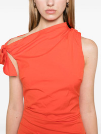 sunset orange cotton blend poplin texture concealed side hook and zip fastening asymmetric neck side tie fastening fitted waistline pleat detailing draped panel detail straight hem full lining above-knee length Size & Fit Model Measurements: Height: 1.75 m Bust/Chest: 78.0 cm Hips: 88.0 cm Waist: 59.0 cm Model wears size 0 Fabric and Care Designer Style ID: SIR4241090 Designer Colour: TANGERINE Composition: Outer: Nylon 22%, Cotton 75%, Spandex/elastane 3%; Lining: Cotton 65%, Nylon 32%, Spandex/elastane 3% Washing instructions: Dry Clean Only