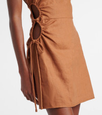 This minidress from SIR features a sleeveless style and is crafted from pure linen. This design showcases the brand's signature cut-out detail at the hip. Product Details - Material: 100% linen - Care instructions: dry clean - Handmade in China - Designer color name: Hazelnut - Item color: brown - Closure: zip and hook fastening - Lining: 100% cotton - Drawstring - Item number: P01041718 Size & Fit - True to size - Cinched waist - Non-stretchy fabric - Height of model is 174cm-68.5" and wears a size 1