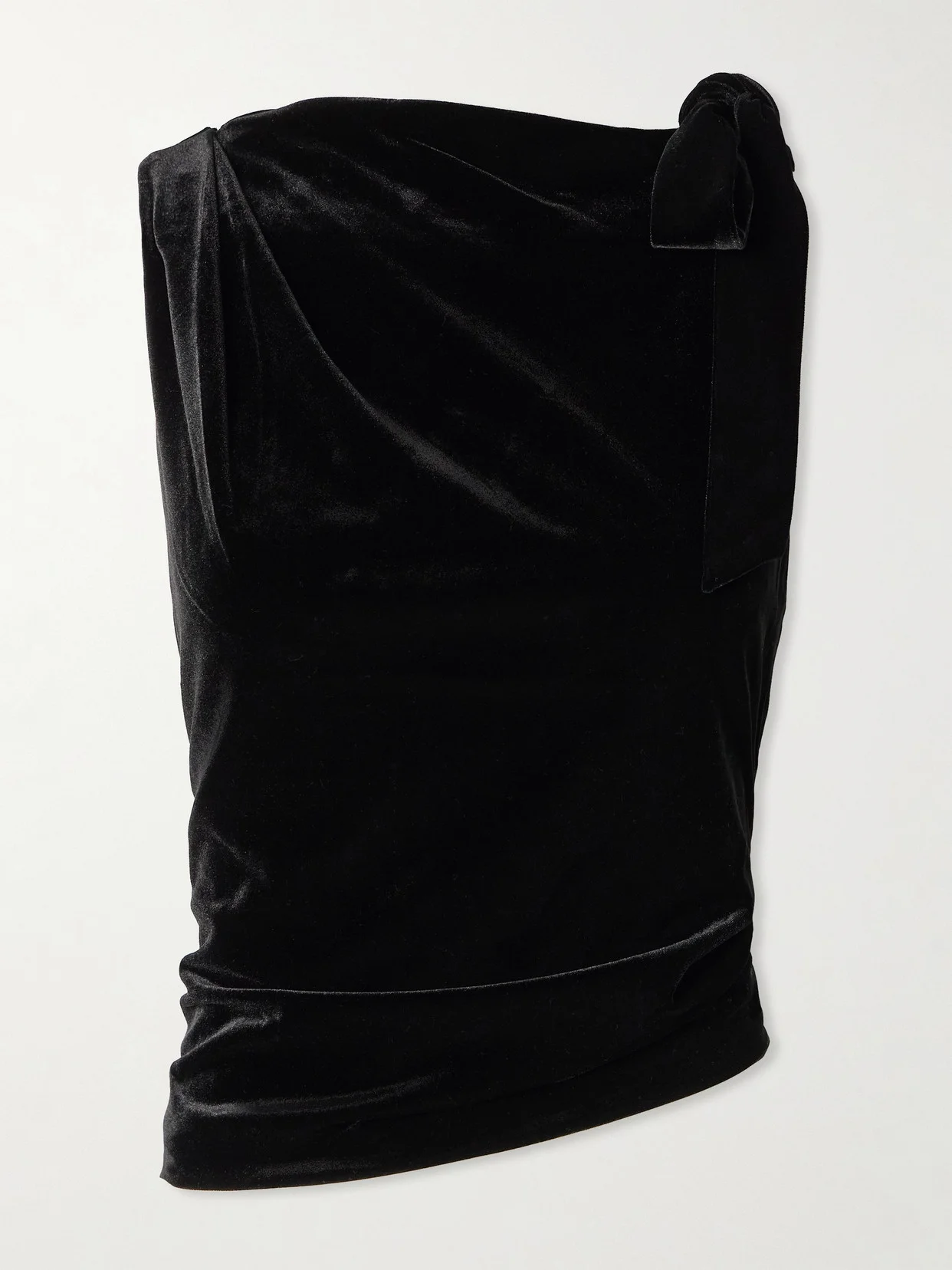 Ettore Asymmetric Tie-detailed Draped Stretch-velvet Top