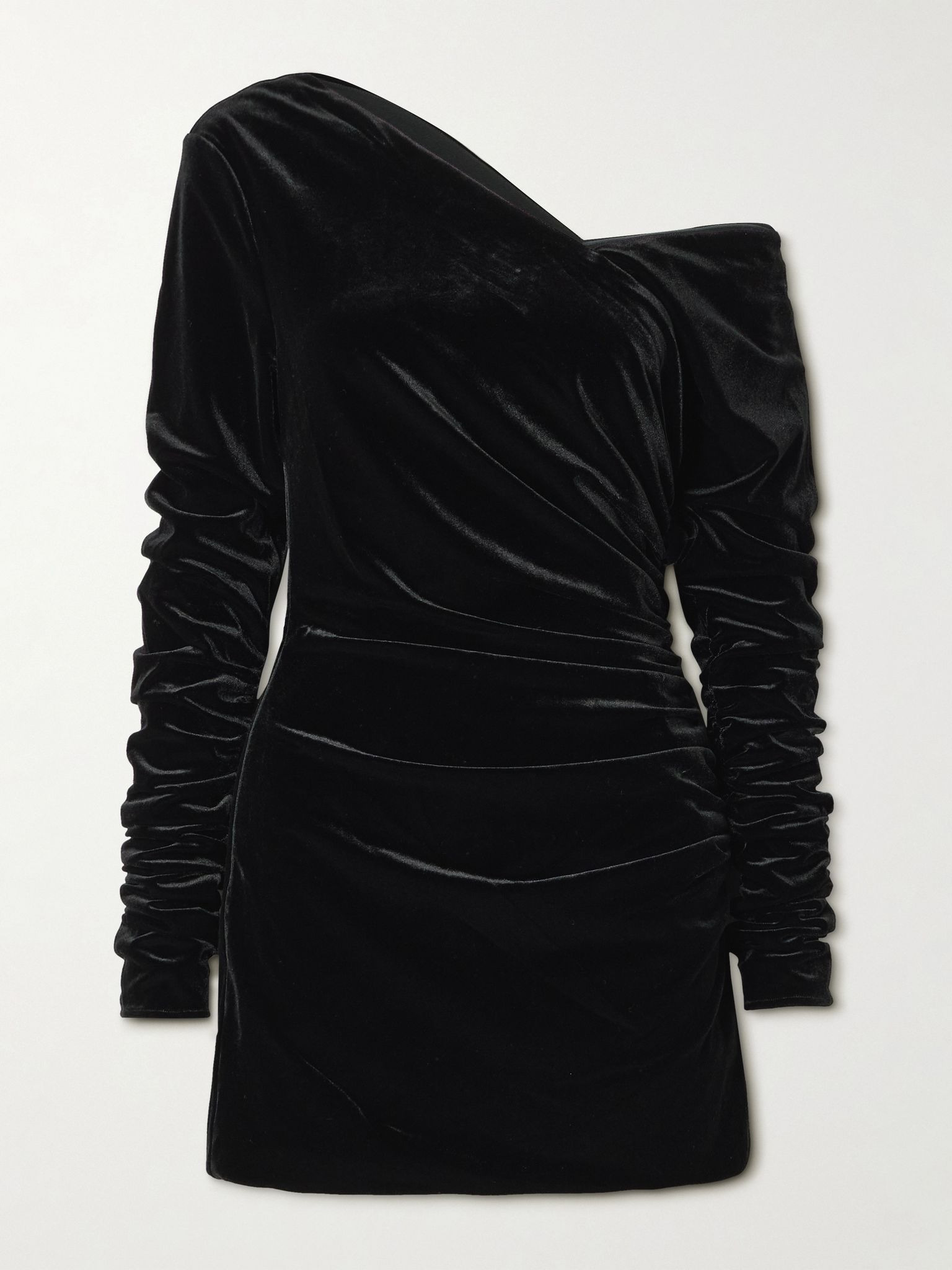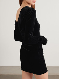 SIR's 'Ettore' dress is such a good example of the label's understated glamour. Made from plush stretch-velvet, it has an asymmetric, off-the-shoulder neckline and ruching along one side to accentuate your figure. Complement the thumbhole cuffs with stacked rings. Size & Fit SIR. follows its own size guide, please refer to below: - Size 00 = UK 4/ US 0/ IT 36/ FR 32 - Size 0 = UK 6/ US 2/ IT 38/ FR 34 - Size 1 = UK 8/ US 4/ IT 40/ FR 36 - Size 2 = UK 10/ US 6/ IT 42/ FR 38 - Size 3 = UK 12/ US 8/ IT 44/ FR 40 - Size 4 = UK 14/ US 10/ IT 46/ FR 42 - Fits true to size, take your normal size - Designed for a close fit - Mid-weight, slightly stretchy fabric - Model is 177cm/ 5'10" and is wearing the designer's size 1 Model measurements: - Bust: 85cm/ 33” - Waist: 66cm/ 26” - Hip: 92cm/ 36” Details & Care - Black stretch-velvet - Concealed zip fastening along side - 95% polyester, 5% spandex; lining: 100% polyester - Fully lined - Dry clean