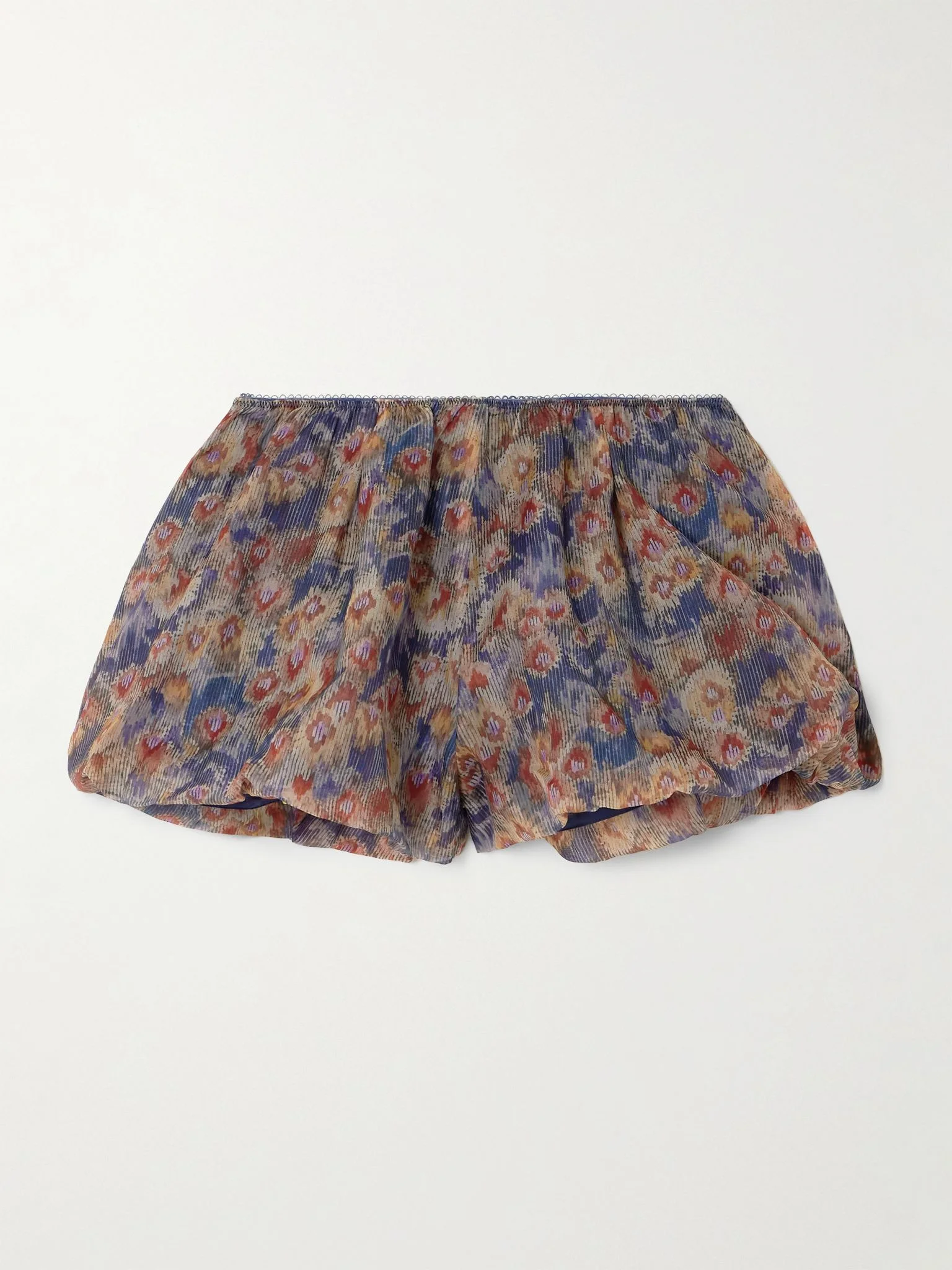 SIR's 'Fiore' shorts are inspired by vintage bloomers. They're made from lightweight silk-organza printed with ditsy blooms and have a voluminous shape with bubble hems. The elasticated waistband is finished with a picot trim. Size & Fit SIR. follows its own size guide, please refer to below: - Size 00 = UK 4/ US 0/ IT 36/ FR 32 - Size 0 = UK 6/ US 2/ IT 38/ FR 34 - Size 1 = UK 8/ US 4/ IT 40/ FR 36 - Size 2 = UK 10/ US 6/ IT 42/ FR 38 - Size 3 = UK 12/ US 8/ IT 44/ FR 40 - Size 4 = UK 14/ US 10/ IT 46/ FR 42 - Fits true to size, take your normal size - Mid-rise, cut for a slightly loose fit - Elasticated at the waist for a flexible fit - Mid-weight, non-stretchy fabric - Model is 180cm/ 5'11" and is wearing the designer's size 1 Model measurements: - Bust: 80cm/ 31.5" - Waist: 65cm/ 25.5" - Hip: 89cm/ 35" Details & Care - Multicolored silk-organza - Pull on - 100% silk; lining: 100% cotton - Fully lined - Dry clean - Designer color: Petalo Scuro