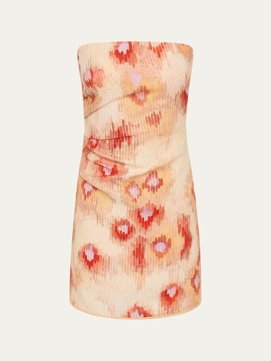 SIR "Fiorella" printed linen mini dress with side ruching Strapless neckline Sleeveless Figure-hugging silhouette Hem falls above the knee Side zip Linen Lining: Cotton Dry clean Imported Online Inquiries: BGS21_T6UN7| Store Inquiries: #5036436