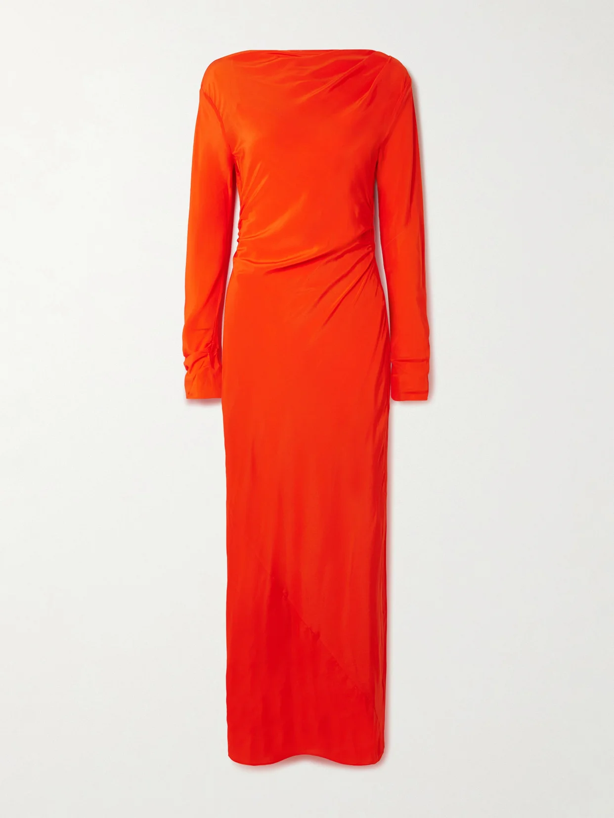 Fresca Gathered Draped Silk Crepe De Chine Maxi Dress