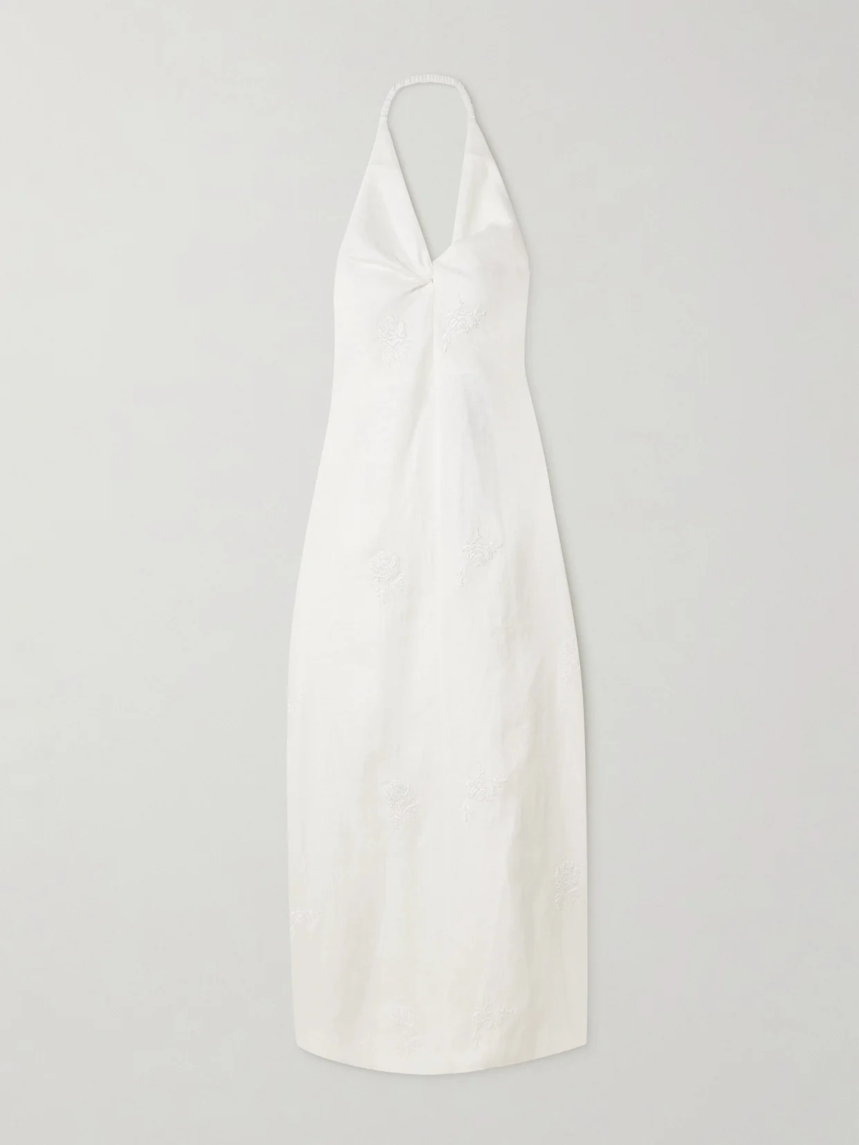 Alessandra Twist-front Embroidered Linen Halterneck Midi Dress