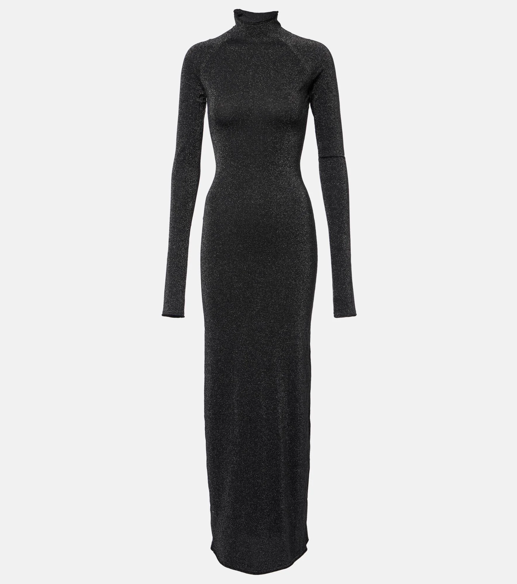 An acronym for “separates, intimates, and ready-to-wear”, SIR sets the standard for easy-to-wear wardrobe staples. Crafted with a lame fabrication, this turtleneck maxi dress features a sculpted fit with long sleeves. Product Details - Material: 85% nylon, 15% metallic fibres - Care instructions: dry clean - Made in China - Designer color name: Black Silver - Item color: black, silver - Collar: mockneck - Item number: P01074257 Size & Fit - True to size - Fitted - Stretchy fabric - The model seen in the picture is 178cm-5'10" and wearing a size 1
