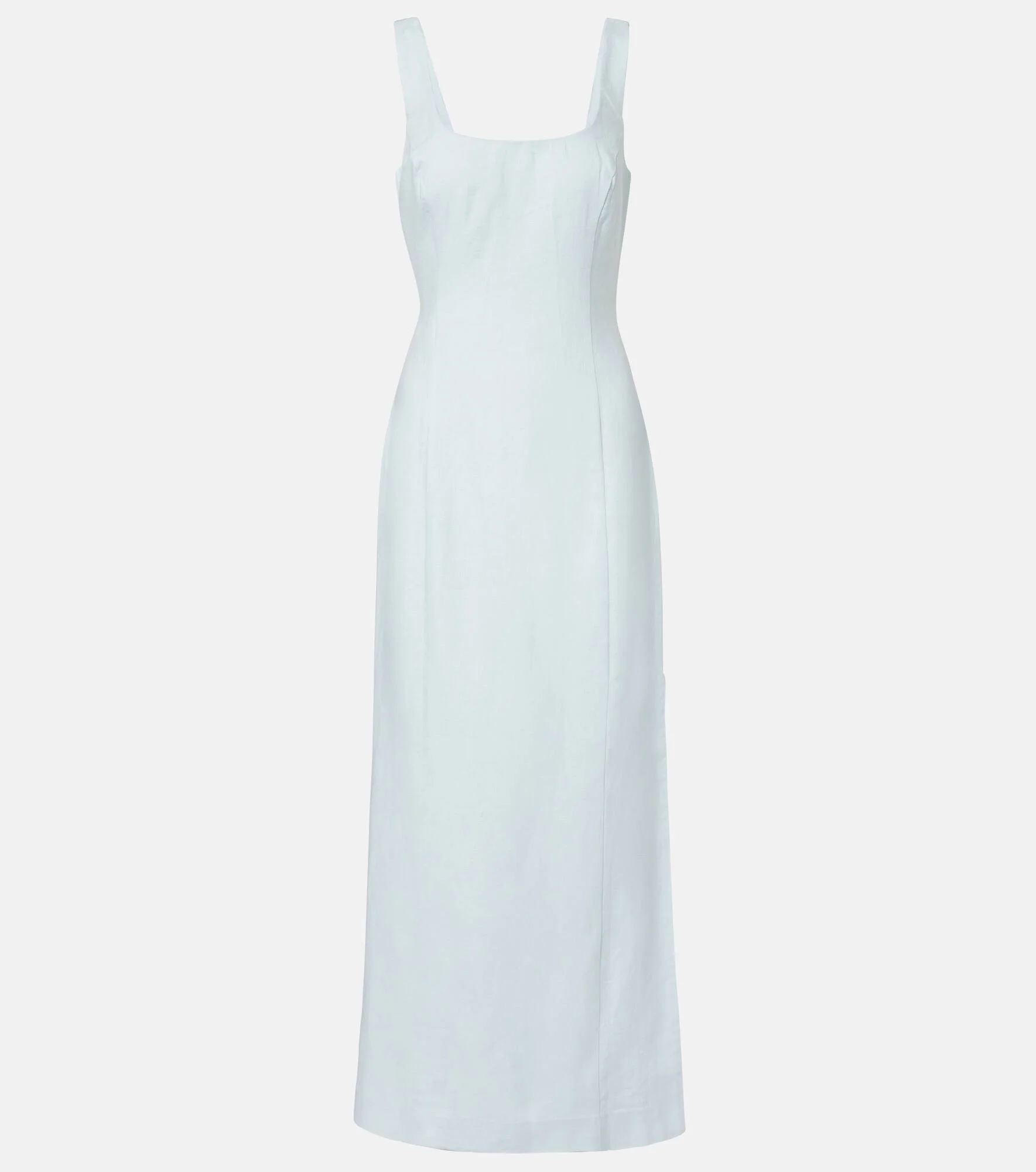 An acronym for “separates, intimates, and ready-to-wear”, SIR sets the standard for easy-to-wear wardrobe staples. Primed for effortlessly elegant warm-weather looks, this maxi dress is made from linen and features a slit on the side. Product Details - Material: 100% linen - Care instructions: dry clean - Handmade in Turkey - Color: blue - Designer color name: Ice Blue - Lining: 100% cotton - Self-tie back - Closure: concealed zipped side - Long vent - Item number: P01145375 Size & Fit - Fits large to size - we recommend trying one size smaller - Low back - Cinched waist - Non-stretchy fabric - The model seen in the picture is 178cm-5'10" and wearing a size 0