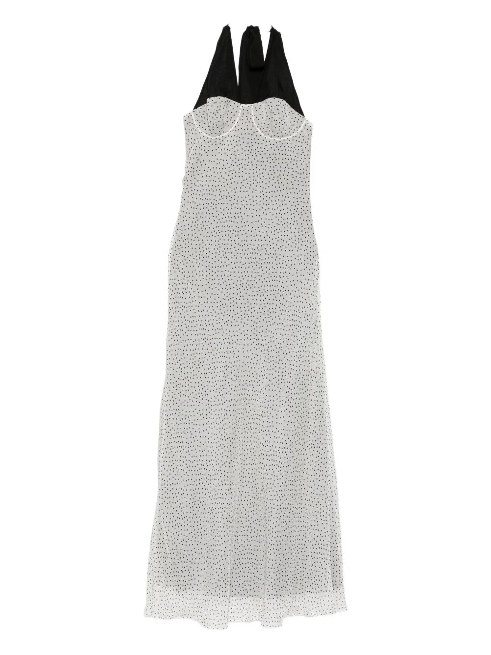 Lisander polka-dot halterneck dress Highlights - Off-white - Polka dot pattern - Halter neck - Sleeveless - Fitted bodice - Maxi length Imported Composition Lining: Silk 100%, Polyester 100% Outer: Silk 100% SIZE & FIT Model measurements Height 5 ft 9 in(1.75 m) Bust/Chest 34.64 in(88 cm) Hips 36.61 in(93 cm) Waist 26.37 in(67 cm) Washing instructions Dry Clean Only