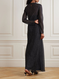 SIR's 'Lisander' dress is made from silk-chiffon that's slightly sheer and comes with an optional satin slip for coverage. Patterned with polka-dots, it's cut on the bias to skim your figure and has long, knuckle-grazing cuffs. You can wear it as a beach coverup, too. Size & Fit SIR The Label follow its own size guide, please refer to below: - Size 00 = UK 4/ US 0/ IT 36/ FR 32 - Size 0 = UK 6/ US 2/ IT 38/ FR 34 - Size 1 = UK 8/ US 4/ IT 40/ FR 36 - Size 2 = UK 10/ US 6/ IT 42/ FR 38 - Size 3 = UK 12/ US 8/ IT 44/ FR 40 - Size 4 = UK 14/ US 10/ IT 46/ FR 42 - Fits true to size, take your normal size - Designed for a slim fit - Designed with a detachable, slim-fitting slip - High leg split - Lightweight, semi-sheer, non-stretchy fabric - Model is 177cm/ 5'10" and is wearing the designer's size 0 Model measurements: - Bust: 77cm/ 30.5" - Waist: 62cm/ 24.5" - Hip: 88cm/ 34.5" Details & Care - Black and white silk-chiffon, black satin - Slips on - 100% silk; lining: 100% polyester - Partially lined - Dry clean - Designer color: Polka Dot Black