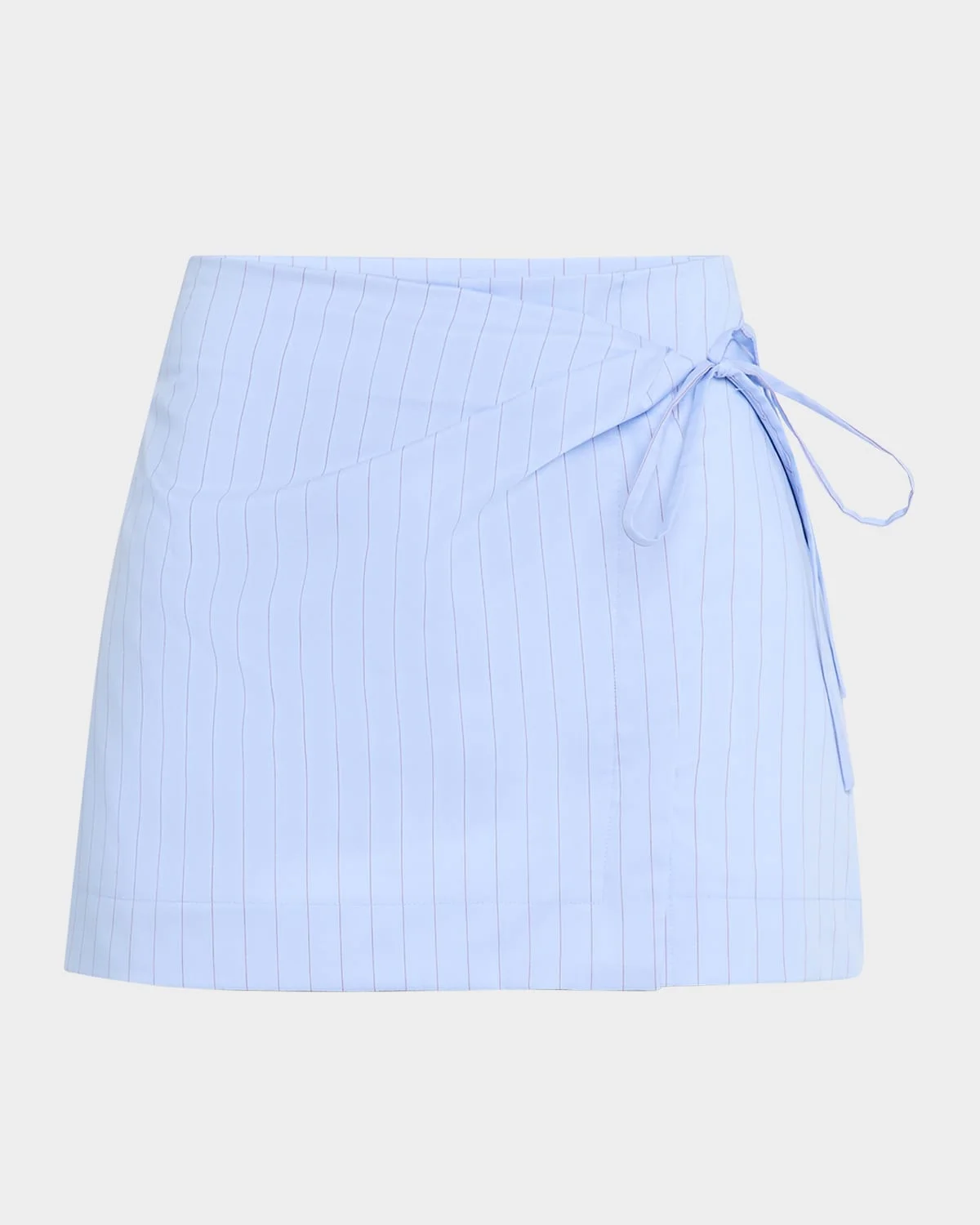 SIR "Lori" pinstripe mini skirt crafted from a stretch cottonpoplin Midrise; sits high on the hip Wrap silhouette Hem falls above the knee Side button closure Polyester Imported