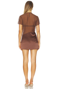 - Self 1: 100% silk Self 2: 92% polyester 8% elastane - Dry clean only - Partially lined Optional bralette included - Back button closure Hidden side zipper closure - Chiffon fabric at top - Satin fabric at skirt with wrap styling - Revolve Style No. SIF-WD197 - Manufacturer Style No. SIR325-1015