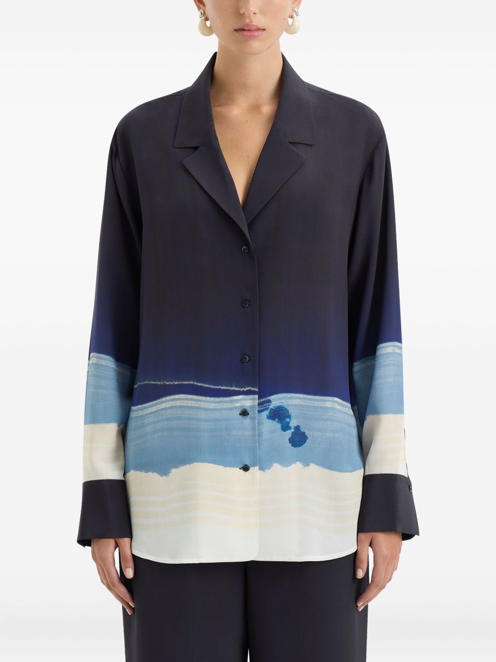 silk shirt Highlights - Midnight blue - Front lace-up fastening - Notched lapels - Tie-dye print - Paint splatter detail Imported Composition Silk 100%