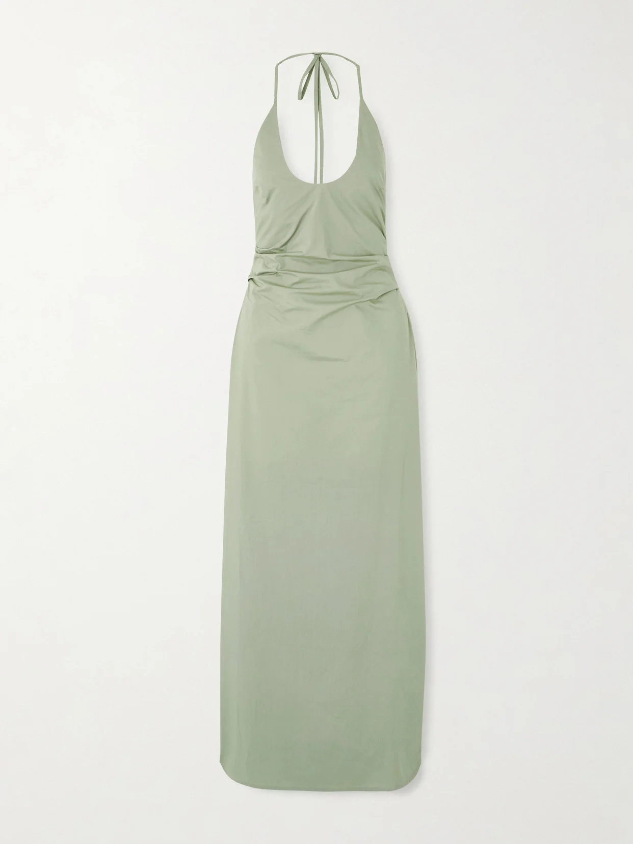 Martina Gathered Cotton-poplin Halterneck Maxi Dress