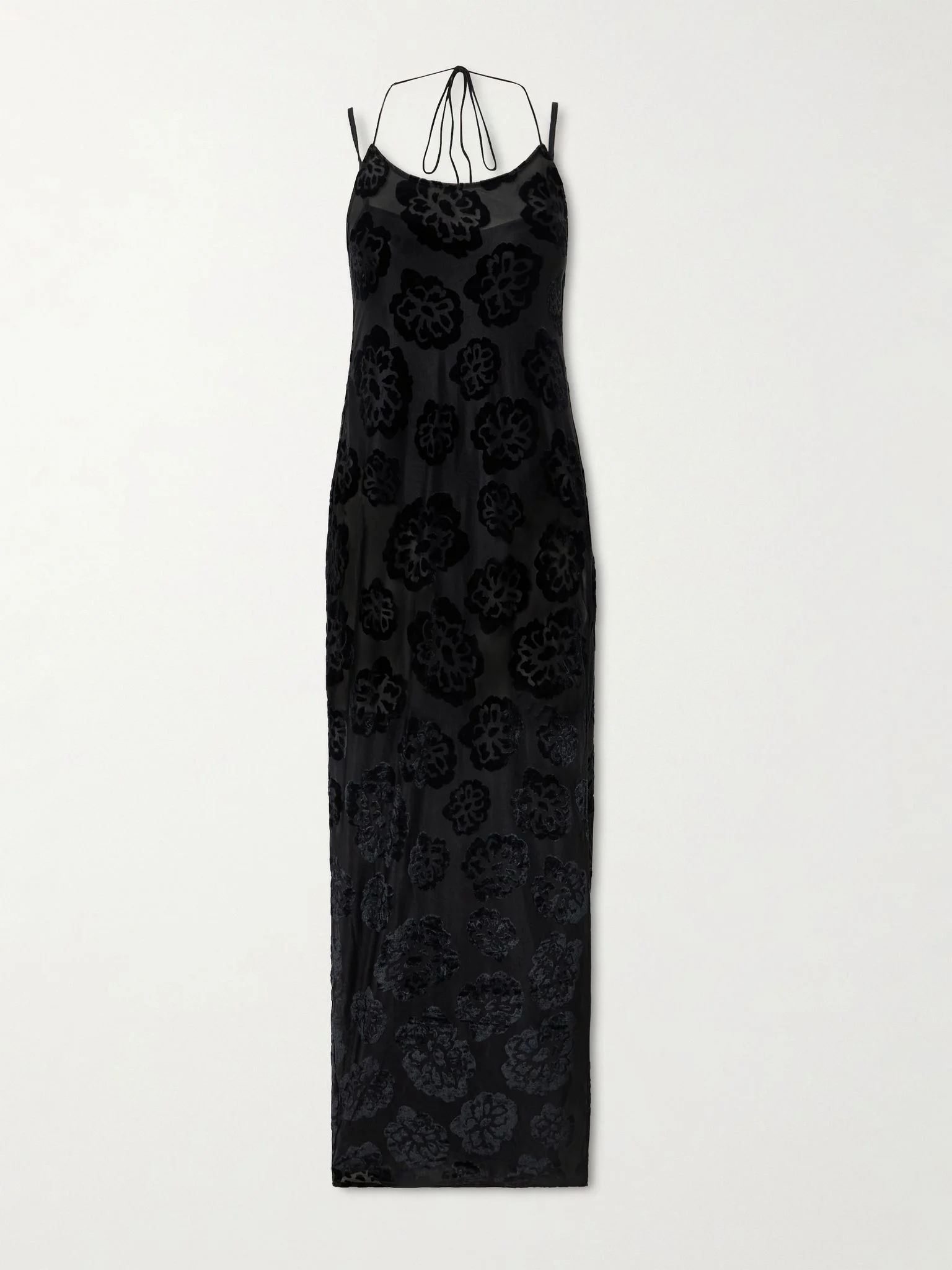 SIR's 'Vittoria' gown is made from stretch devore-velvet patterned with 'Midnight Florals'. It skims over your figure and has a low back and deep slit at the side. Wear yours with the detachable bodysuit for just enough coverage. Size & Fit SIR. follows its own size guide, please refer to below: - Size 00 = UK 4/ US 0/ IT 36/ FR 32 - Size 0 = UK 6/ US 2/ IT 38/ FR 34 - Size 1 = UK 8/ US 4/ IT 40/ FR 36 - Size 2 = UK 10/ US 6/ IT 42/ FR 38 - Size 3 = UK 12/ US 8/ IT 44/ FR 40 - Size 4 = UK 14/ US 10/ IT 46/ FR 42 - Fits true to size, take your normal size - Designed for a slightly loose fit - Mid-weight, non-stretchy fabric - Model is 180cm/ 5'11" and is wearing the designer's size 1 Model measurements: - Bust: 80cm/ 31.5" - Waist: 65cm/ 25.5" - Hip: 89cm/ 35" Details & Care - Black devore-velvet - Ties at neck - Fabric1: 68% polyester, 24% polyamide, 8% spandex; fabric2: 86% nylon, 14% spandex - Partially lined - Dry clean - Designer color: Midnight Floral