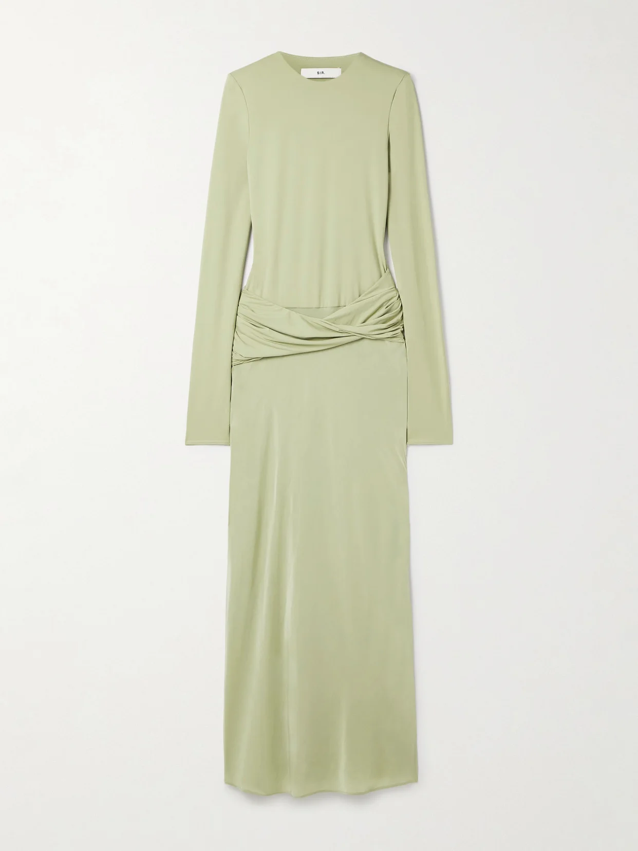 SIR's elegant 'Milesi' gown is designed to look like perfectly curated separates. The stretch-jersey bodice features a twisted panel for a sculptural, draped effect, while the satin skirt gently skims your legs and is complete with a side split.