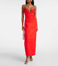 Made from crisp linen in a vibrant coral hue, SIR's Noemi maxi dress will become your next go-to for warm-weather events. If features slight ruching, a sweetheart neckline, a playful cutout detail, and a side slit for a comfortable stride. Product Details - Material: 100% linen - Care instructions: dry clean - Made in China - Designer color name: Red - Item color: red - Closure: zipped back - Item number: P01041721 Size & Fit - True to size - Internal corset with underwire support - Cinched waist - Non-stretchy fabric - slit length 58cm-23" - The model seen in the picture is 178cm-5'10" and wearing a size 1