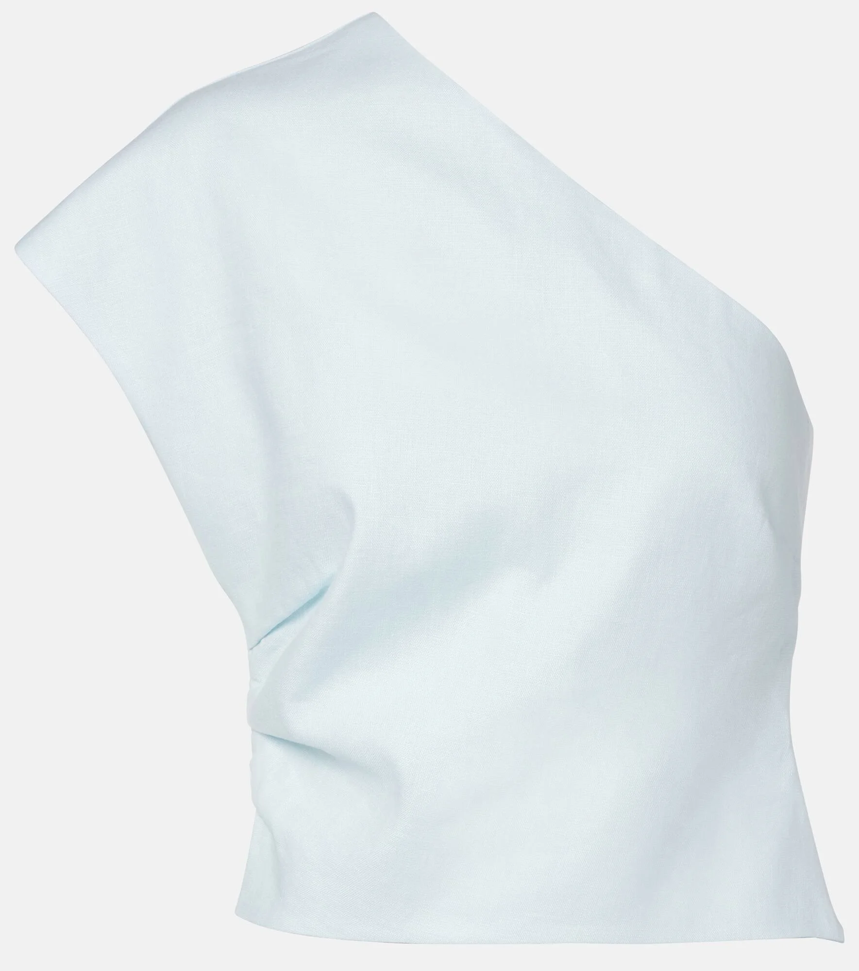 An acronym for “separates, intimates, and ready-to-wear”, SIR sets the standard for easy-to-wear wardrobe staples. Made from breathable linen, this sophisticated top comes in a one-shoulder silhouette. Product Details - Material: 100% linen - Care instructions: dry clean - Handmade in Turkey - Color: blue - Designer color name: Ice Blue - Lining: 100% cotton - Closure: concealed zipped side - Item number: P01145377 Size & Fit - Fits large to size - we recommend trying one size smaller - Cinched waist - Non-stretchy fabric - Cropped - The model seen in the picture is 178cm-5'10" and wearing a size 0