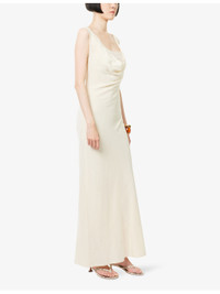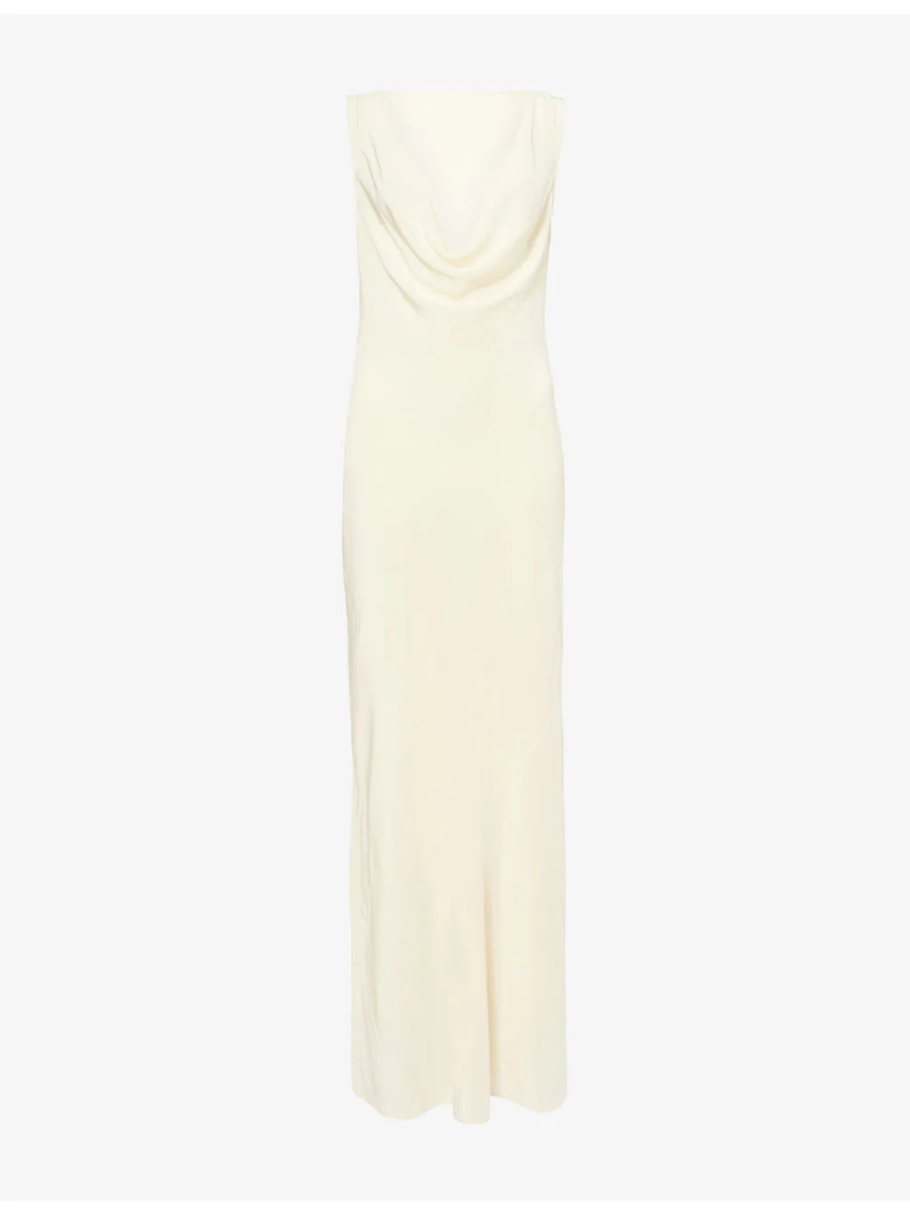 PRODUCT DETAILS - SIR. silk midi dress - 100% silk; contrast 92% silk, 8% elastane - Regular fit, draped neck, sleeveless, all-over sati texture, detachable lining - Dry clean only - True to size - Size small: length 57in / 145cm - Model is 5ft 10in/1.78m and wears a size small - Lightweight, stretchy Ref: R04494256
