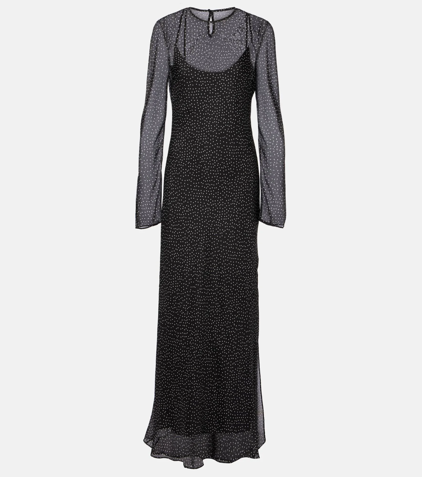 An acronym for “separates, intimates, and ready-to-wear”, SIR sets the standard for easy-to-wear wardrobe staples. Crafted from silk, this elegant maxi dress features a charming all-over polka-dot print. Product Details - Material: 100% silk - Care instructions: dry clean - Made in China - Designer color name: Polka Dot Nero - Item color: black, white - Lining: 100% polyester - Closure: buttoned back - Long vent - Detachable lining - Item number: P01074250 Size & Fit - True to size - Cinched waist - Non-stretchy fabric - The model seen in the picture is 178cm-5'10" and wearing a size 1