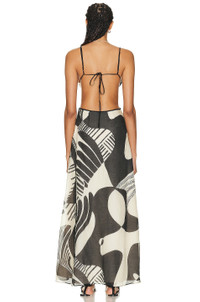 Details - Self: 100% silk - Contrast Fabric: 70% cotton, 30% silk - Lining: 100% polyester - Made in China - Dry clean only - Fully lined - Hidden side zipper closure - Back tie closure - Adjustable shoulder straps - Side and back cut-outs - Our Style No. SIF-WD74 - Manufacturer Style No. SIR223-1056