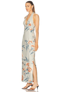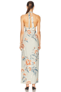 Details - Self: 100% linen - Lining: 100% cotton - Made in China - Dry clean only - Fully lined - Halterneck tie-up closure - Hidden side zipper closure - Bustier design - Linen fabric with side slit - Our Style No. SIF-WD171 - Manufacturer Style No. SIR125-1059