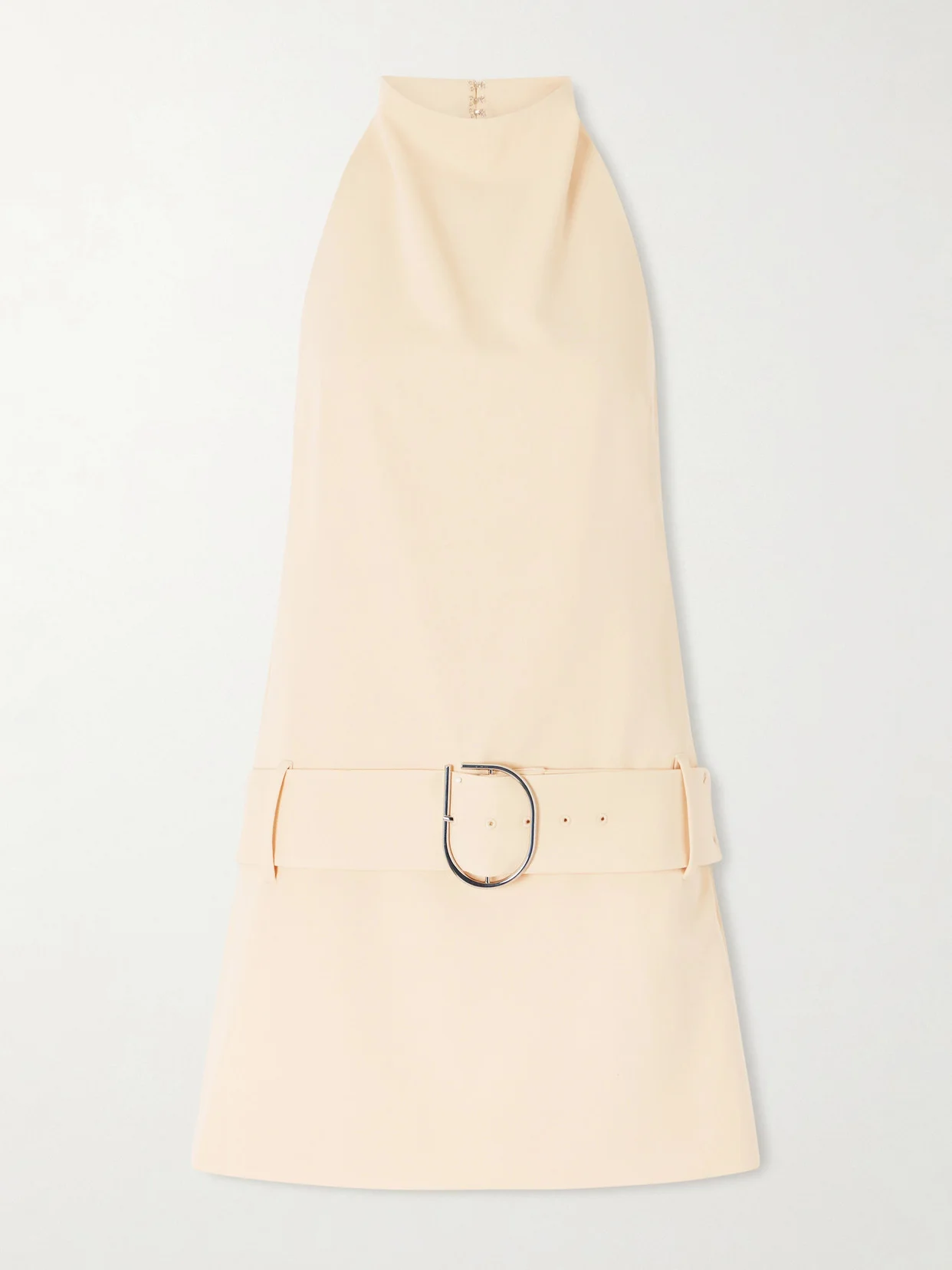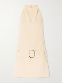 Sabina Belted Draped Woven Halterneck Mini Dress