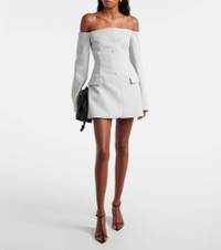 Product Details - Material: 67% polyamide, 35% cotton, 4% elastane - Care instructions: dry clean - Made in Vietnam - Designer color name: Ice Blue - Closure: zipped back, buttoned front - Pockets: flap pockets - Item number: P00990423 Size & Fit - Fits large to size - we recommend trying one size smaller - Off-the-shoulder - Cinched waist - Non-stretchy fabric - The model seen in the picture is 178cm-5'10" and wearing a size 0