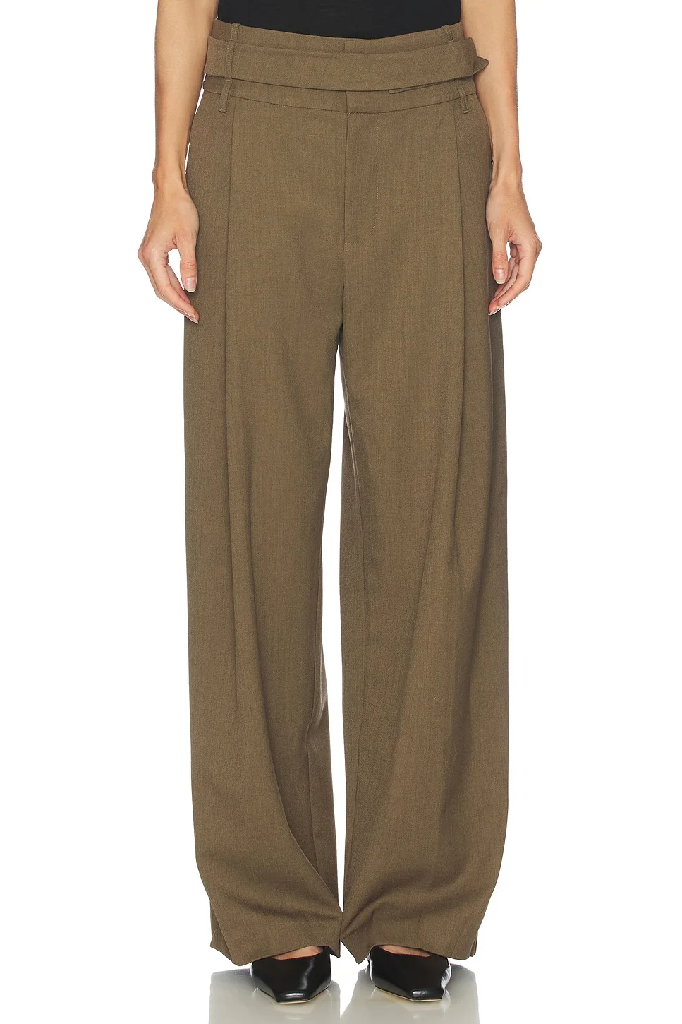 - Self:89% Polyester, 3% Wool, 3% Rayon, 5% Elastane Lining: 100% Polyester - Dry clean only - Zip fly with hook and bar clasp closure - Front slant pockets, back faux pockets - Inseam measures approx 30" - Leg opening approx 24" - Detachable belt Item not sold as a set.24" at the leg opening - Revolve Style No. SIR-WP1 - Manufacturer Style No. SIR225-5017
