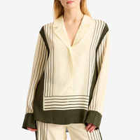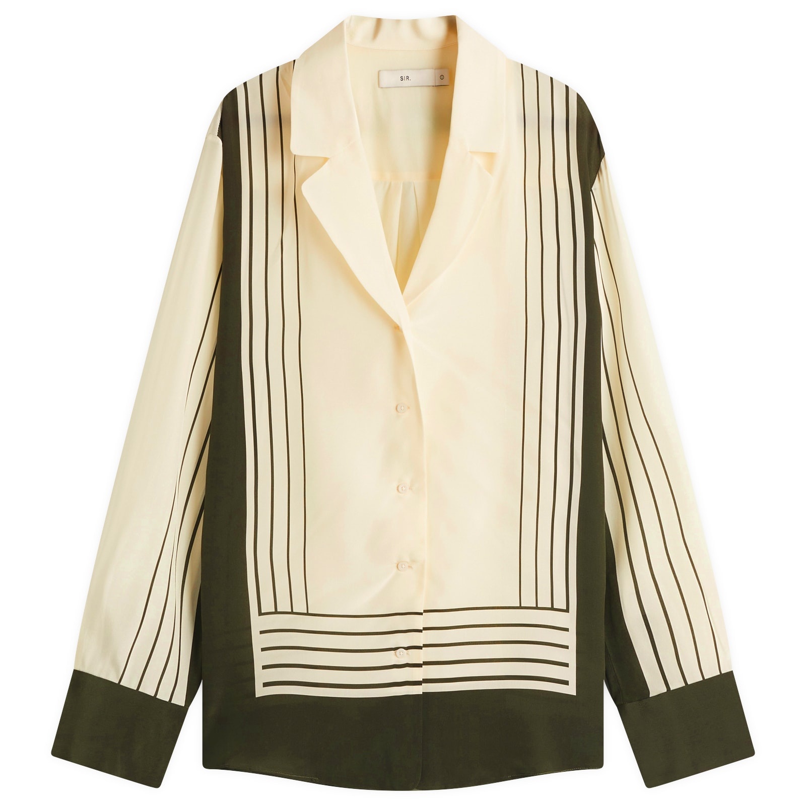 SIR. is your new best friend for wardrobe essentials with minimalist silhouettes—where everything is made to the highest quality. The Leilana Shirt is crafted from luxurious silk crepe de chine in the brand’s exclusive Garden Stripe print, styled with a loose, flowing fit. Paired with winter-ready trousers or summery mini-skirts, it’s suited to every season. - 100% Silk - Relaxed Fit - Button Closure - Dry Clean Only