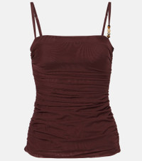 An acronym for “separates, intimates, and ready-to-wear”, SIR sets the standard for easy-to-wear wardrobe staples. Crafted from stretch jersey, this tank top features elegant gathering all over, complemented by delicate straps with bead accents. Product Details - Material: 88% nylon, 12% elastane - Care instructions: dry clean - Made in China - Designer color name: Espresso - Item color: burgundy - Material II: 88% nylon, 12% elastane - Adjustable shoulder straps - Item number: P01074301 Size & Fit - True to size - Fitted - Slightly stretchy fabric - Falls to the hip - The model seen in the picture is 178cm-5'10" and wearing a size 1