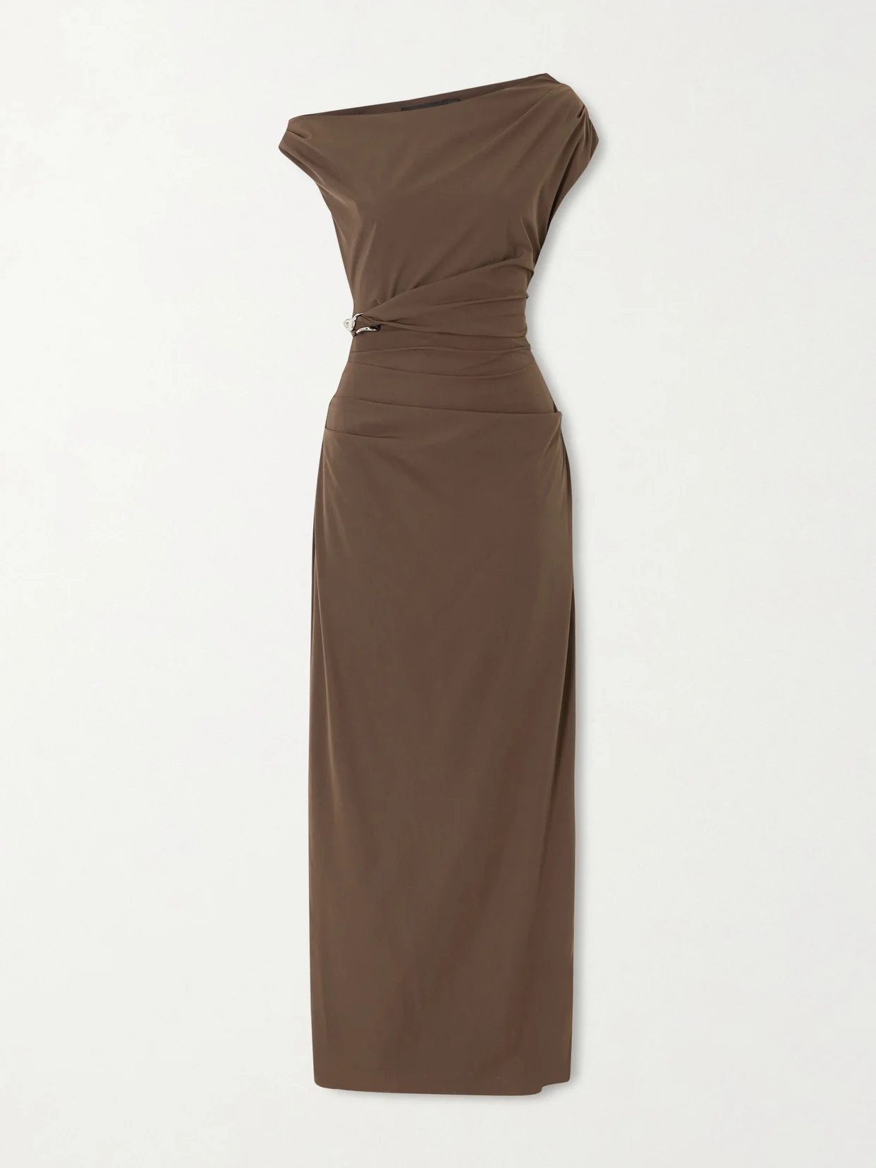 SIR.'s 'Sol' dress is adorned with a sculptural embellishment, which can be removed for a more streamlined look. Cut from crisp shell, it's gathered through the bodice and has a one-shoulder neckline. Match your jewelry to the silver-tone detail.